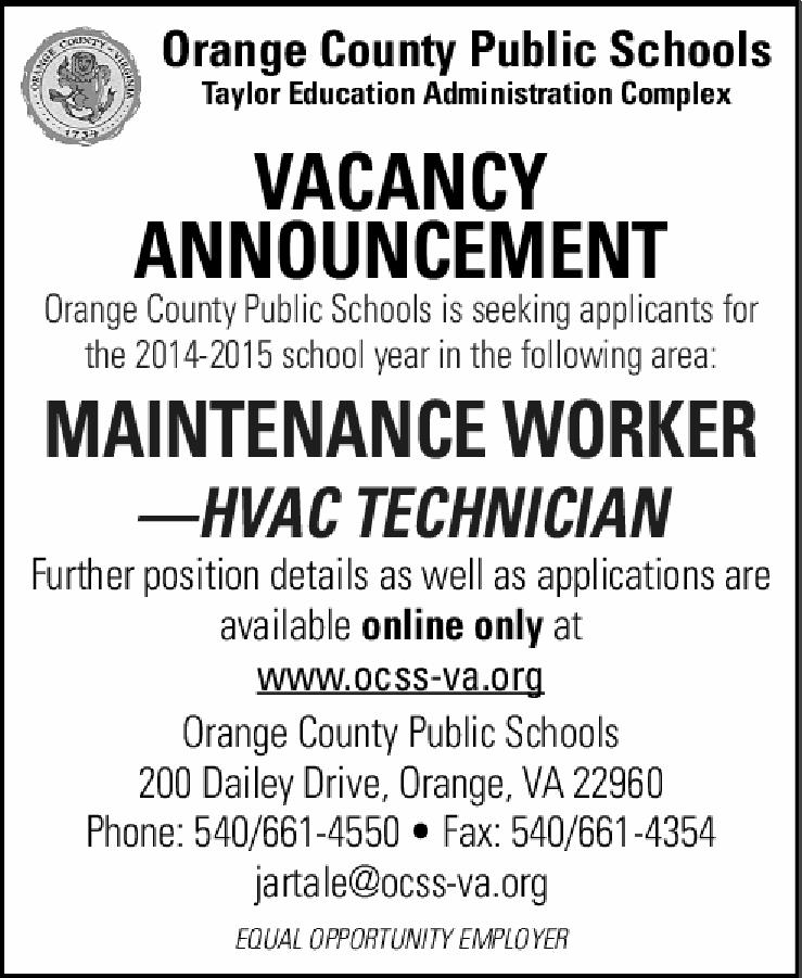 JOB VACANCY FORM X Full-time Part-time Summer-Job Internship Job Title: HVAC Maintenance Engineer Application Deadline: N/A Reference Number: 310317-14 Company (Supervisor and technician). Report to project manager. ... Retrieve Content